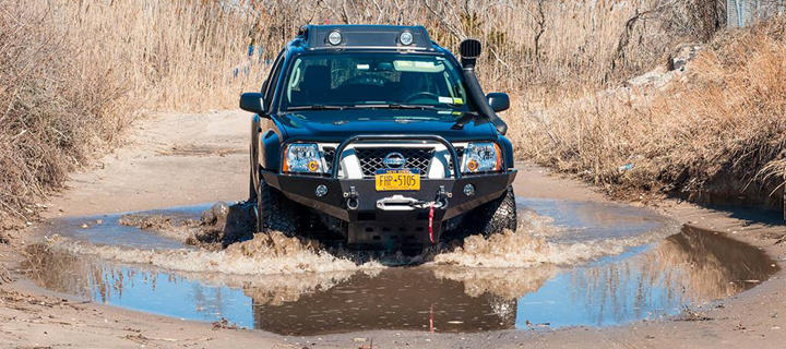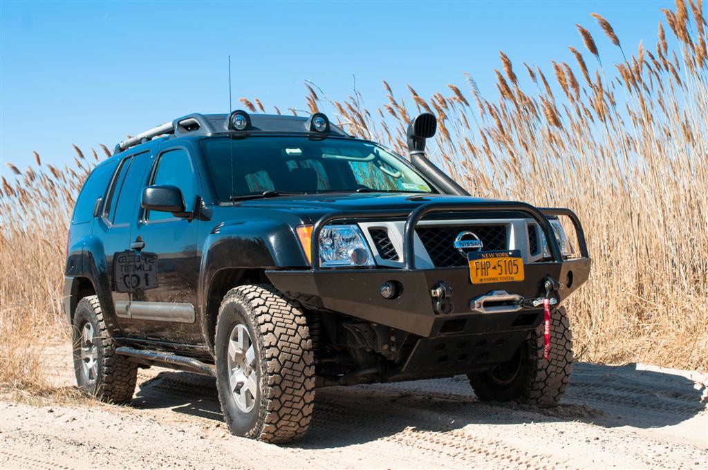 Tak więc wybór padł na Nissana Xterra PRO-4X. W zasadzie gdyby nie lampy na dachu, samochód niczym nie odróżniałby się od przeciętnego SUV-a na Queensie. Oczywiście do Patrola z Bieszczad czy Opla Montery na 35-calowych gumach z Podkarpacia dużo mojej orginalnej Xterrze brakowało. Ale gazowe amortyzatory Bilsten, tylny most Dana44 z elektrycznie sterowaną blokadą mechanizmu różnicowego to nie koniecznie było to, o czym marzyłem. Do czasu… Najpierw pewna sympatyczna pani nauczyciel z Bostonu wyrwała mi przedni zderzak venem od przeprowadzek. Uświadomiłem sobie wtedy, że stalowy zderzak z firmy Shrockworks jest mi bardziej potrzebny w Nowym Jorku, niż Patrolowi na stromych podjazdach w Bieszczadach. Ze snorkelem było podobnie. Zamontowałem go po przejeździe przez niewinnie wyglądające bajorko w parku offroadowym w Pennsylwani. Woda przelała się górą po masce i o mały włos nie zniszczyła silnika. Po dniu spędzonym w przymarzniętym bajorku w stanowym lesie na południu New Jersey zamówiłem wyciągarkę Warn 9.5 XP z syntetyczną liną 3/8 cala. Skoro zderzak i wyciągarka to sprężyny i amortyzatory też trzeba wymienić. Zakupiłem amortyzatory gazowe firmy Icon Vechicle Dynamics z 2-calowym liftem i górne control arm o dłuższym skoku firmy Total Chaos Fabrication. Na tył założyłem amortyzatory Rancho RS 9000XL i dołożyłem po jednym piórze do resorów. Już widzę skrzywione miny czytelników związane z resorem piórowym. Niemniej jednak Xterra zrobiona na skróconej ramie od pickupa Frontiera i bardzo wolno modernizowana korzysta z takiego właśnie rozwiązania zawieszenia, i zapewne długo jeszcze będzie.