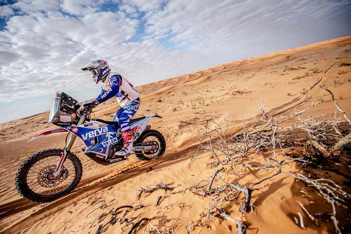Podobnie, jak przed rokiem w Peru, Ricky Brabec jest liderem na półmetku rajdu z przewagą ponad 20 minut. Amerykanin zakończył pierwszą część rajdu efektownym zwycięstwem etapowym w Rijadzie, pokonując swojego kolegę z zespołu Joana Barredę. Świetnie pojechał Maciej Giemza. Motocyklista Orlen Teamu osiągnął metę na 23. miejscu i awansował do czołowej dwudziestki na 17 miejsce. “Jestem na półmetku rajdu i fajnie, że udało mi się utrzymać równe tempo i uniknąć błędów nawigacyjnych czy wywrotek” – powiedział. “Dzisiejszy odcinek był bardzo długi i szybki. Jeżeli cały przyszły tydzień będę jechał dobrym tempem, wynik powinien być satysfakcjonujący – podsumował Maciej Giemza. Krzysztof Jarmuż zakończył dzień na 10. pozycji w klasyfikacji Original by Motul i awansował na 7. miejsce.