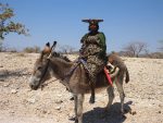Trzeba było jednak jechać dalej, gdzie czekała Namibia z kolejnymi porcjami swojej niesamowitej oferty: flamingi w zatoce Walvis Bay, dwieście tysięcy (sic!) kotików na przylądku Cape Cross, nieokiełznane Wybrzeże Szkieletowe, gdzie walczące ze sobą żywioły lodowatego oceanu i gorącej pustyni pozostawiają żniwo w postaci sterczących z morza lub z piasku wraków statków. Kolejne fantastyczne biwaki i setki szutrowych kilometrów prowadziły nas w kierunku Kaokoveldu – dzikiej i rozległej części Namibii znanej z fantastycznych możliwości wypraw 4×4 oraz zamieszkujących ją plemion Himba i Herero. Pierwsi z nich – Himba – to lud pasterski żyjący w trudnych pustynnych warunkach. Jego znakiem rozpoznawczym są kobiety o nieprzeciętnej urodzie, przyodziane jedynie w kuse spódniczki z koziej skóry. Z uwagi na bardzo ograniczony dostęp do wody nie myją się one wcale, a higienę utrzymują poprzez okadzanie miejsc intymnych oraz nacieranie ciała i włosów substancją wytwarzaną z tłuszczu, popiołu i ceglasto-czerwonej ochry. Drudzy – Herero – to dumny lud rolniczy, a ich element rozpoznawczy to także damski strój. Jakże jednak odmienny i oryginalny: bajecznie wzorzysta i kolorowa wiktoriańska suknia składająca się z krynoliny i kilku warstw halek, a do tego fantazyjny kapelusz uformowany na kształt zwierzęcych rogów. Taką kolorową mieszankę można spotkać wśród bezdroży Kaokoveldu. Podniesiona w geście pozdrowienia dłoń niejednokrotnie zachęca do migowej, niezdarnej konwersacji, a pokazane na ekranie aparatu wspólne zdjęcie wywołuje salwy śmiechu. Mimo troski o zdrowe uzębienie lokalnej społeczności nie udaje się odmówić kilku cukierków dla zasmarkanych i przekrzykujących się dzieciaków. Jazda też szła lepiej – kamieniste podjazdy w górach i piaszczyste koryta wadi pokonywaliśmy sprawnie, raz po raz sprawdzając czy pozapinany pasami i siatkami ekwipunek przetrwał kolejny etap podróży. Jednak Linyanti czekało, a mój umysł wciąż toczyła niepewność czy aby nie przeszarżowaliśmy z naszymi planami. Prymitywny camping w okolicach Purros z wizytami żyraf w ciągu dnia i nocnymi odwiedzinami hien oraz piękne wodospady Epupa dla nas były zwieńczeniem wizyty w tej okolicy, ale dla doświadczonych miłośników wypraw 4×4 jest tam znacznie więcej atrakcji. Hartmann Valley czy Van Zyl’s Pass zapewne podnoszą tętno niejednemu wyjadaczowi.