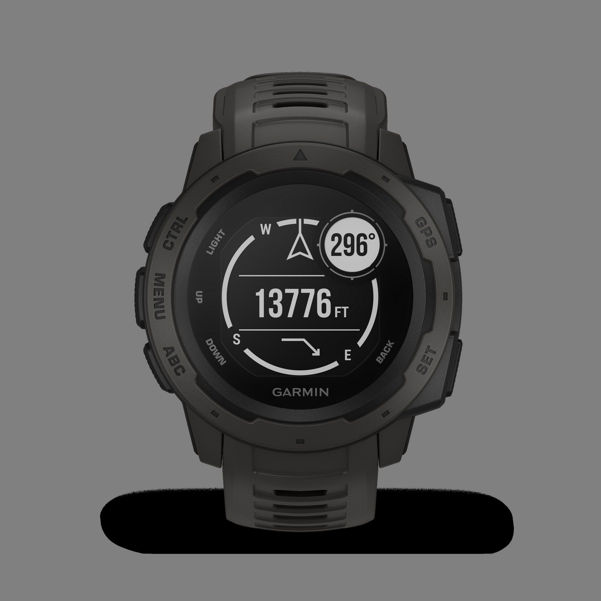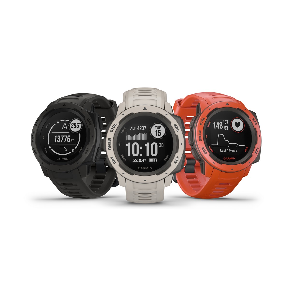 Instinct to wytrzymały zegarek GPS z wbudowanym 3-osiowym kompasem, wysokościomierzem barometrycznym, łącznością z globalnymi systemami nawigacji satelitarnej (GPS, GLONASS i Galileo) oraz nadgarstkowym pulsometrem. Czasomierz posiada również szereg zainstalowanych fabrycznie aplikacji dedykowanych różnym aktywnościom outdoorowym, pozwalających monitorować treningi i parametry związane z kondycją. Instinct spełnia wojskowe wymagania (standard MIL-STD-810G) dotyczące odporności termicznej, odporności na wstrząsy i wodoodporności (do 100 metrów). Jego obudowa jest wykonana z wzmacnianego włóknami polimeru, a utwardzany chemicznie i odporny na zarysowania wyświetlacz pozostaje czytelny nawet w mocnym świetle słonecznym. Bateria modelu Instinct pozwala na pracę nawet przez 14 dni w trybie smartwatch, do 16 godzin w trybie GPS i do 40 godzin w trybie oszczędzania baterii UltraTrac.