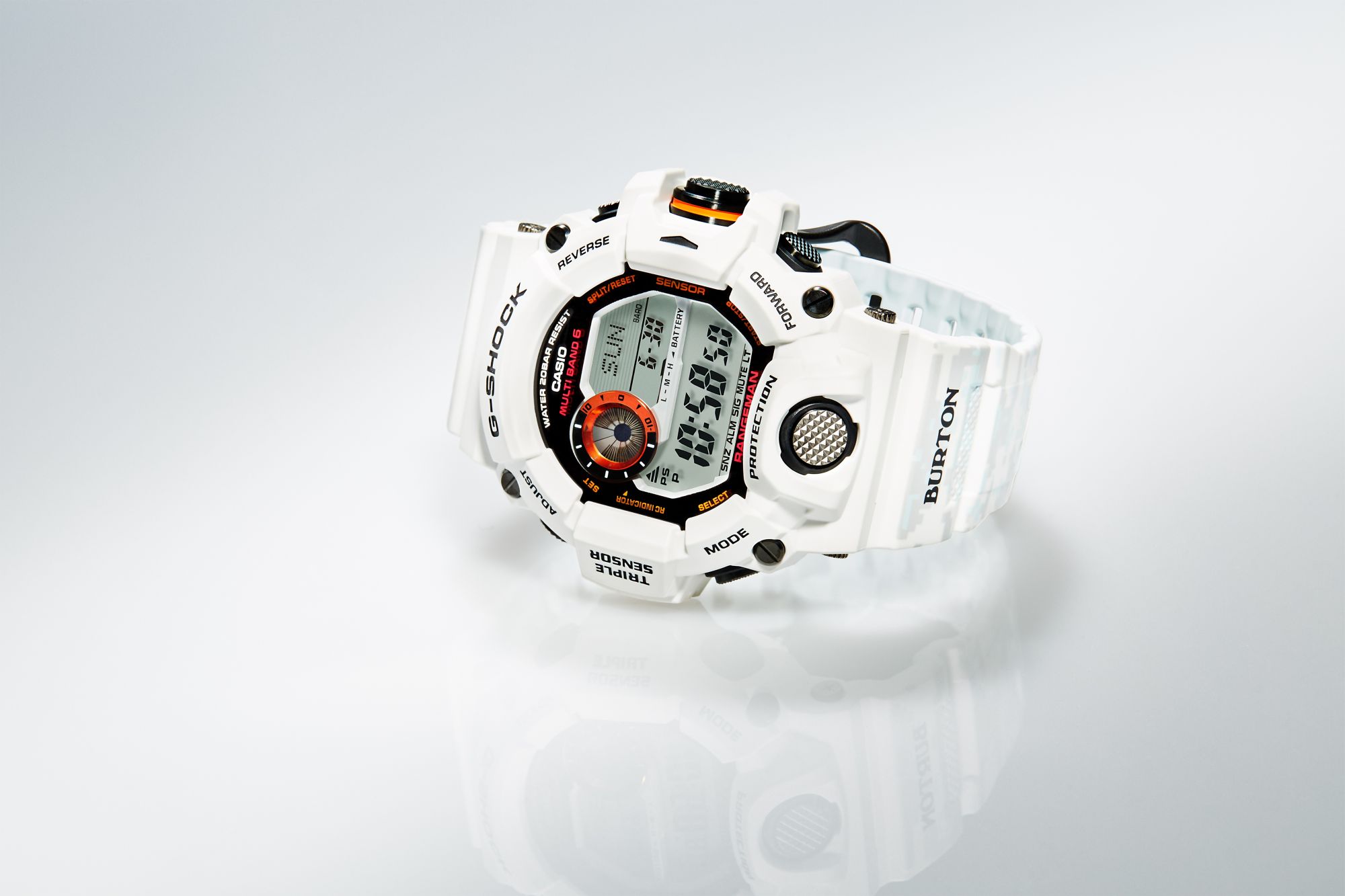 Kluczowym motywem zarówno dla G-SHOCK jak i marki BURTON stało się wykorzystanie w limitowanym modelu zimowej kolorystyki w odcieniach jasnego błękitu oraz czystej bieli, z paroma ciekawymi stylistycznie akcentami. Greg Dacyshyn – dyrektor kreatywny marki Burton tak podsumował cały projekt : „Byłem bardzo podekscytowany kolejną kolaboracją z marką G-SHOCK, szczególnie że tematem przewodnim współpracy stało się hasło: „Przetrwanie w każdej sytuacji”. Dlatego technologiczną bazą do zaprojektowania wspólnego, nowego modelu stał się kultowy, niezawodny G-SHOCK Rangeman. Natomiast kluczem do stworzenia estetyki limitowanej edycji był motyw zimowego, cyfrowego kamuflażu, który został wykorzystany na pasku zegarka. Zawsze byłem zafascynowany wzorem moro, nie tylko dlatego że generalnie wygląda świetnie, ale również dlatego, że bezsprzecznie kojarzy się z survivalem. W efekcie połącznia wszystkich tych motywów powstał rewelacyjny zegarek wyróżniający się wyjątkowym wyposażeniem, a do tego wyglądający „cool” na stoku i poza nim.’’