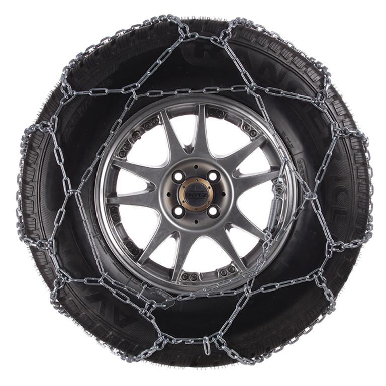 Ogniwa łańcucha łączone są trwale i kształtowane w zauważalne od czoła opony romby, ustawione skośnie, lub w przypadku tańszych rozwiązań w linie poprzecznie prostopadle lub skośnie do ruchu opony. Powstaje wtedy układ drabinkowy lub jodełkowy, takie rozwiązanie oferuje np. Panek. Czasami można spotkać się z rozwiązaniami ze wspawanymi dodatkowymi płytkami metalowymi, poprawiającymi trakcje, a także z dodatkowymi zewnętrznymi ogniwami kruszącymi lód (Thule Easy-fit SUV). Na rynku najczęściej spotykamy jednak standardowe rozwiązania wykonane z łańcuchów o oczkach 12 mm, konieczny wtedy jest większy prześwit w nadkolu opony. W przypadku pojazdów używających ogumienia o dużych rozmiarach felg lub gdy sama opona jest ponad wymiarowa można dobrać łańcuchy o oczkach 9 mm, przy czym należy pamiętać, że czym większe oczko tym lepiej zagłębia się w śnieg zapobiegając uślizgowi koła. W skrajnych przypadkach możemy też wybrać łańcuchy 7 mm np. Thule CK-7.