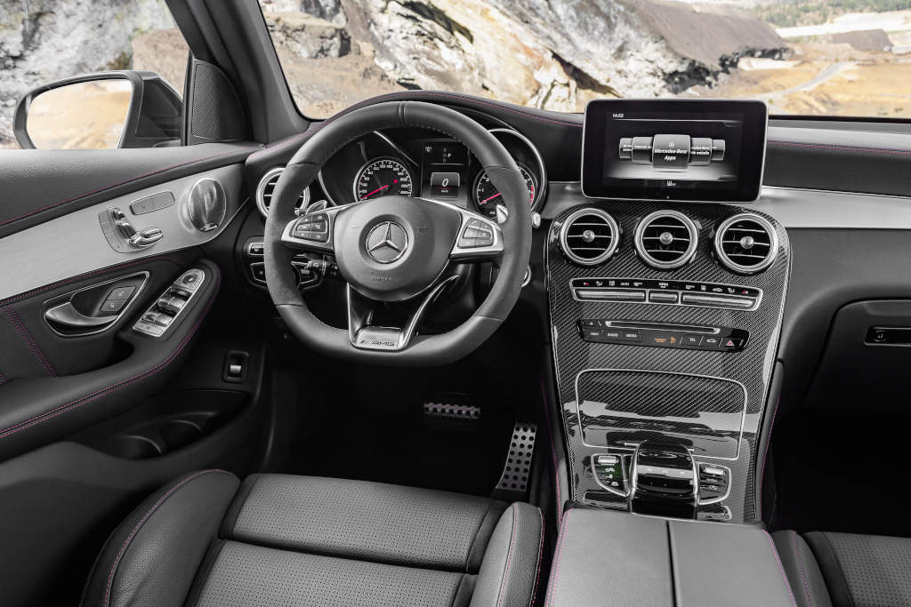 Sportowy charakter GLC 43 4MATIC uwydatniają również elementy opcjonalnego wyposażenia, np. sportowe fotele z mocniejszym podparciem bocznym, skórzana tapicerka, elementy ozdobne z włókien węglowych, pakiet Night czy 21-calowe, dwukolorowe obręcze kół.