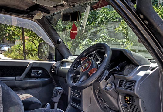 Aleksander miał już Pajero, ale szukał czegoś niecodziennego. Realizacja jego marzeń musiała jednak poczekać, co wynikało z potrzeb powiększonej rodziny. W końcu nastał odpowiedni moment i udało się znaleźć właściwy egzemplarz, który Aleksander od razu nabył. Był to przyciągający wzrok, oklejony naklejkami, czarny, trzydrzwiowy, wysoko podniesiony Padżer na wielkich kołach. Miał wprawdzie dość zaawansowany wiek, bo pochodził z rocznika 1994, ale był wyposażony w 3-litrówkę V6 pod maską i automatyczną skrzynię biegów. Na dodatek pojazd pochodził wprost z Japonii – miał bowiem kierownicę po prawej stronie. O dalekowschodnim pochodzeniu świadczą też dodatkowe lusterka na przodzie maski – ułatwiające ciasne manewry.