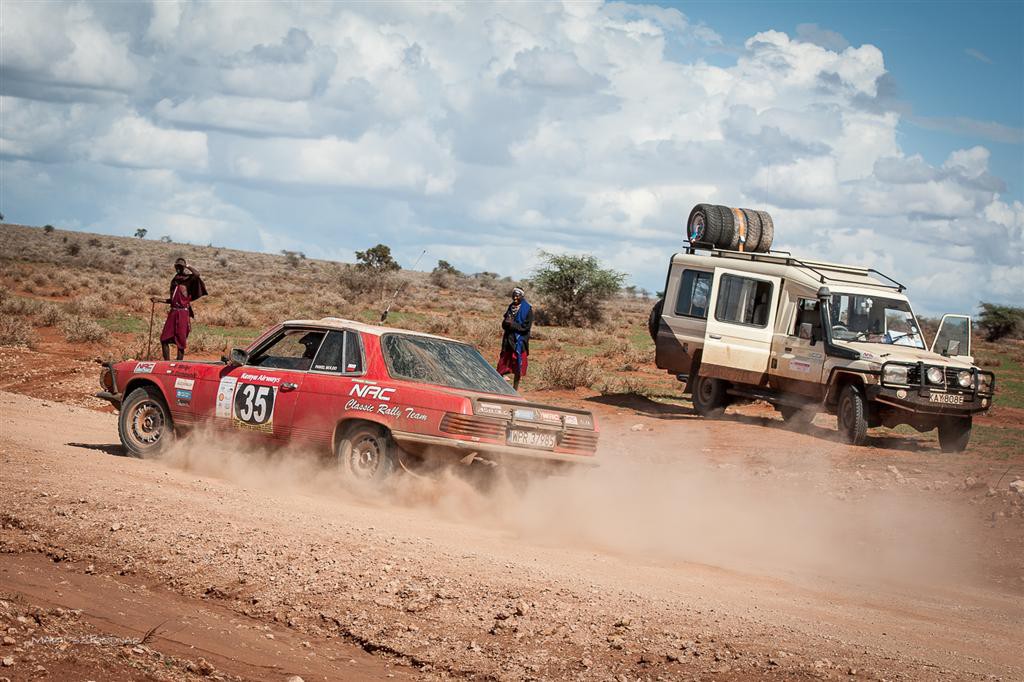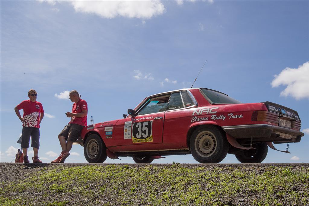 Z jego opinią zgadza się Jacek Czachor, który wraz z Michałem Ungurianem przyjechał do Kenii, by kibicować swojemu koledze z rajdów cross-country. Zdaniem czternastokrotnego uczestnika Dakaru rajd East African Safari Classic Rally, w którym rywalizują auta klasyczne z napędem na jedną oś, śmiało można nazwać… „małym Dakarem”. – Faktycznie na tej samej trasie, po której jechaliśmy, z powodzeniem mogłyby rywalizować auta terenowe! – przytakuje Paweł Molgo. – Pokonywaliśmy brodem rzeki, mierzyliśmy się ze stromymi zjazdami i podjazdami. Nawierzchnia drogi zmieniała się nieustannie: jechaliśmy po piachu, kamieniach i fesz feszu, czasem w błocie lub po dziurach. Bywało, że stosunkowo nisko zawieszonym, długim autem z napędem na tylną oś manewrowałem w wymytych przez wodę miejscach, które byłyby prawdziwym wyzwaniem dla mojej Toyoty Hilux. Powtórzę po raz kolejny – tak ogromnych trudności na rajdzie dla samochodów klasycznych nie spodziewaliśmy się!