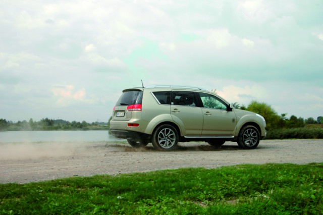Niestety, nisko poprowadzona podłoga i chowane weń foteliki wymusiły umiejscowienie koła zapasowego pod tylną częścią nadwozia. Tuż obok wypada tłumik końcowy, nieco wcześniej zbiornik paliwa, a całkiem z przodu pierwsza bańka wydechu. Do tego nisko poprowadzone wahacze, spore zwisy…C-Crosser, jak i Outlander czy Peugeot 4007, nie wypadają pod względem podwozia nazbyt terenowo. Na większych nierównościach trzeba mocno uważać albo unikać głębszych dziur i kolein. Całkiem sprawnie natomiast działa napęd: ręczna skrzynia bez reduktora wymaga myślenia przy ruszaniu (łatwo silnik zdławić albo przypalić sprzęgło), ale jadący już C-Crosser zachowuje się poprawnie. Mocny, elastyczny i bardzo kulturalny silnik w połączeniu ze sprawnym układem rozdziału napędu (zwłaszcza w trybie Lock) dają komfort pokonywania śliskich i mało zwięzłych nawierzchni. Przy swoich ograniczenia podwoziowych C-Crosser wydaje się klasycznym „miękkim” crossoverem, wystarczająco sprawnym do pokonania zimowego górskiego podjazdu czy polnej gruntówki.