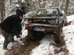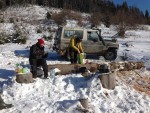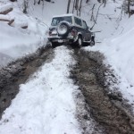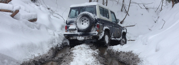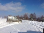 Tuż po przekroczeniu granicy w Medyce, ponownie poczuliśmy, że Ukraina to nadal jedno z najbliższych i najlepszych miejsc dla off-roadu. Wystarczy nieco zjechać z „głównej” drogi, aby z powrotem poczuć wakacyjnego ducha przygody. Z tą różnicą, że termometr nie wskazywał 25 stopni ciepła, a -18 zimna. Wyprawa była swoistym wyzwaniem dla tych, którzy dopiero co rozpoczynali zabawę spania w namiocie zimową porą. Trzeba było zadbać o odpowiedni ekwipunek. Pierwszy i najważniejszy punkt: śpiwór puchowy. Bez niego ani rusz! Przyznać można, że na miejscu mieliśmy do niego jeszcze dużo szczęścia. W ostatnią noc spanie było „prawie” jak w hotelu. Przy wyjeździe z lasu znaleźliśmy opuszczoną, wojskową przyczepkę, która służyła za nocleg dla drwali pracujących przy wyrębie lasu w lecie. Przyczepa obita tapetą, biegające myszy, ale – co najważniejsze – w środku był piec! Po kilkudniowych zmaganiach w lesie i spaniu w namiocie, taki rarytas potraktowaliśmy jako prawdziwy uśmiech od losu. Ale o tym nieco później…
