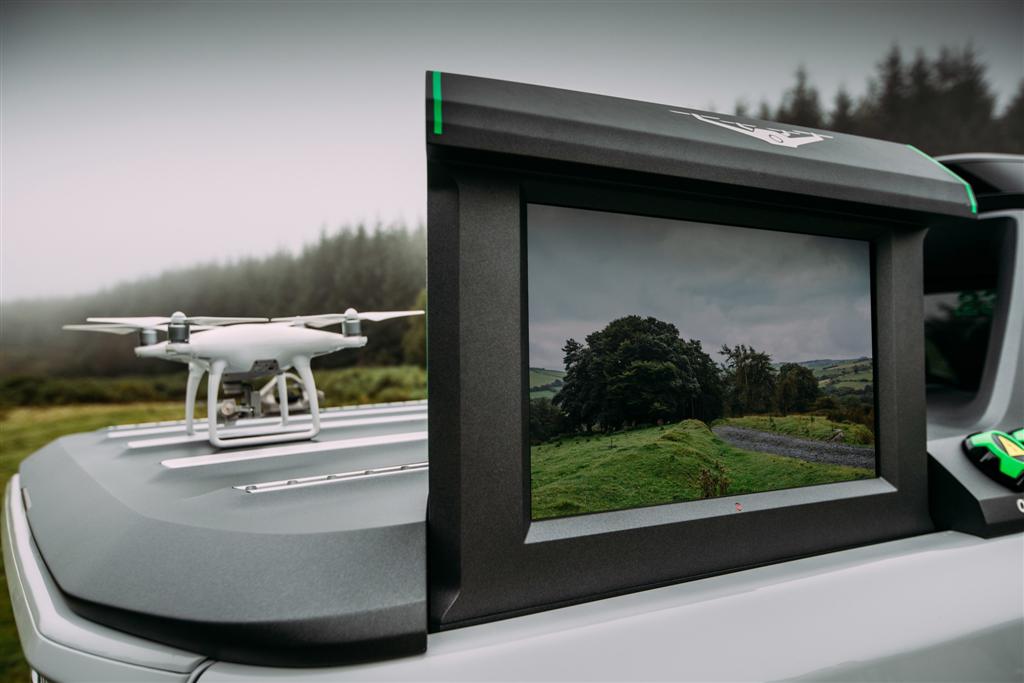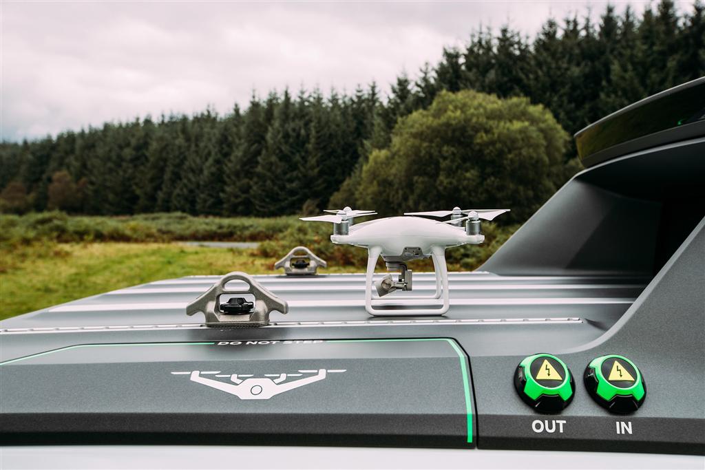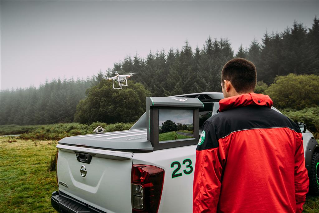 Sam dron to najnowocześniejszy model DJI Phantom 4 z maksymalnym pułapem lotu 6000 metrów. Urządzenie ważące zaledwie 1380 gramów może latać z prędkością do 20 metrów na sekundę przez prawie 30 minut. Kamera o rozdzielczości 12,4 megapiksela, umieszczona w trzyosiowym stabilizatorze na spodzie drona, może rejestrować obraz wideo i zdjęcia. Dron jest przewożony w dolnym schowku skrzyni ładunkowej modelu Navara EnGuard Concept.