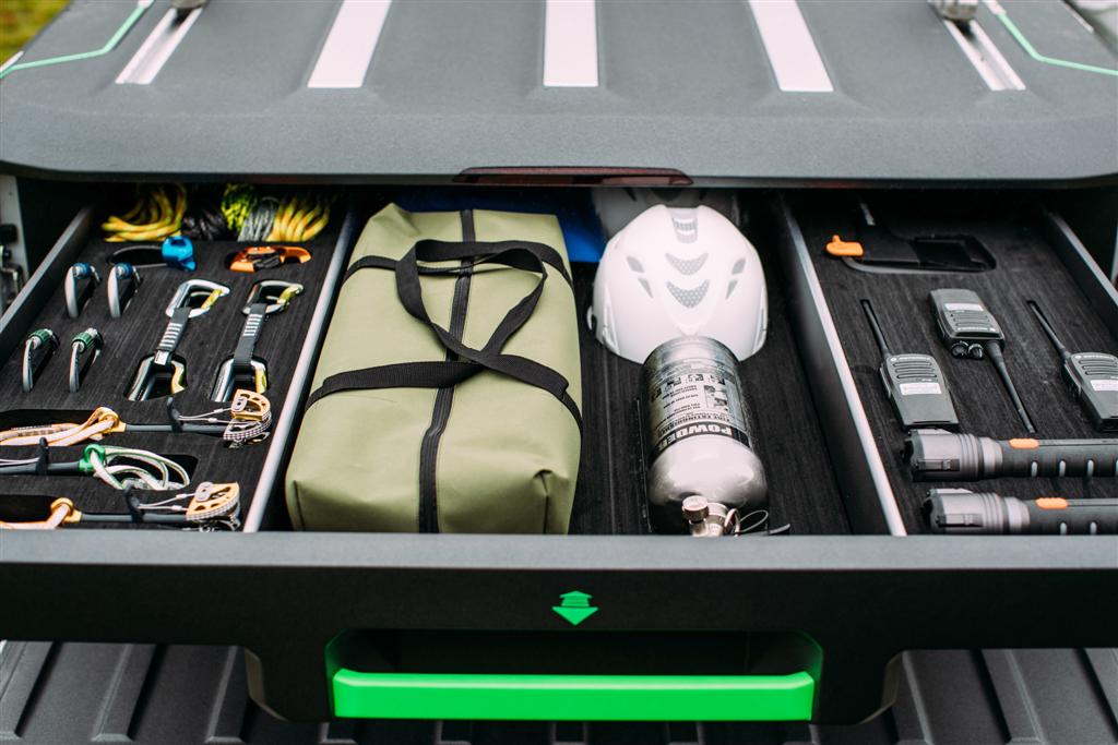 Płytsza górna platforma zajmuje całą szerokość skrzyni ładunkowej. Umieszczono w niej lżejsze przedmioty, taki jak krótkofalówki, mocne latarki, gaśnicę, liny i sprzęt wspinaczkowy, łopatę i siekierę. Dolna platforma jest głębsza i węższa — zajmuje tylko środkową część, jedną trzecią szerokości skrzyni ładunkowej modelu Navara EnGuard Concept. Służy ona do przechowywania większego sprzętu, takiego jak zbiornik z tlenem, zestaw do resuscytacji oraz kamizelki ratunkowe.