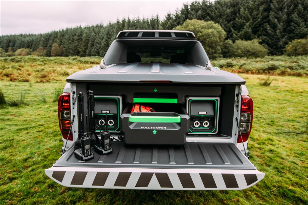 Najważniejszą częścią Nissana Navara w codziennej eksploatacji jest skrzynia ładunkowa. To samo dotyczy modelu Navara EnGuard Concept. Samochód jest mobilną bazą dla ekipy ratunkowej i został w pełni wyposażony w sprzęt do ratowania życia w niedostępnych miejscach i trudnych warunkach.