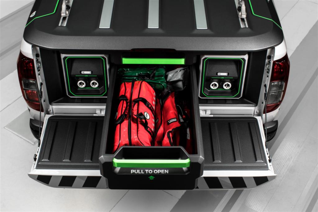 W tylnej burcie zastosowano nową wyprofilowaną wykładzinę. Zamontowano w niej także trzecie światło hamowania, przeniesione z przedziału pasażerskiego. Sprzęt ratunkowy na skrzyni ładunkowej jest umieszczony na dwóch łatwo dostępnych wysuwanych platformach. Są one wykonane z wytrzymałego, dwuwarstwowego włókna szklanego i wysuwają się z samochodu na 800 mm.