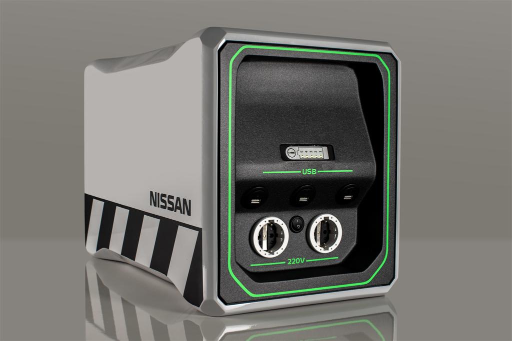 Po bokach dolnej platformy, przy prawej i lewej burcie skrzyni ładunkowej, umieszczono dwa prototypowe przenośne zespoły akumulatorowe. To eksperymentalne rozwiązanie — przykład alternatywnego wykorzystania akumulatorów skonstruowanych na potrzeby samochodów elektrycznych Nissana — debiutuje na Salonie Samochodowym w Hanowerze. Sprzedawszy ponad 250 000 samochodów elektrycznych na świecie, Nissan należy do ścisłej czołówki tego szybko rozwijającego się sektora. Firma dysponuje doskonałym zapleczem pozwalającym opracowywać nowe zastosowania z myślą zarówno o branży motoryzacyjnej, jak i indywidualnych użytkownikach.