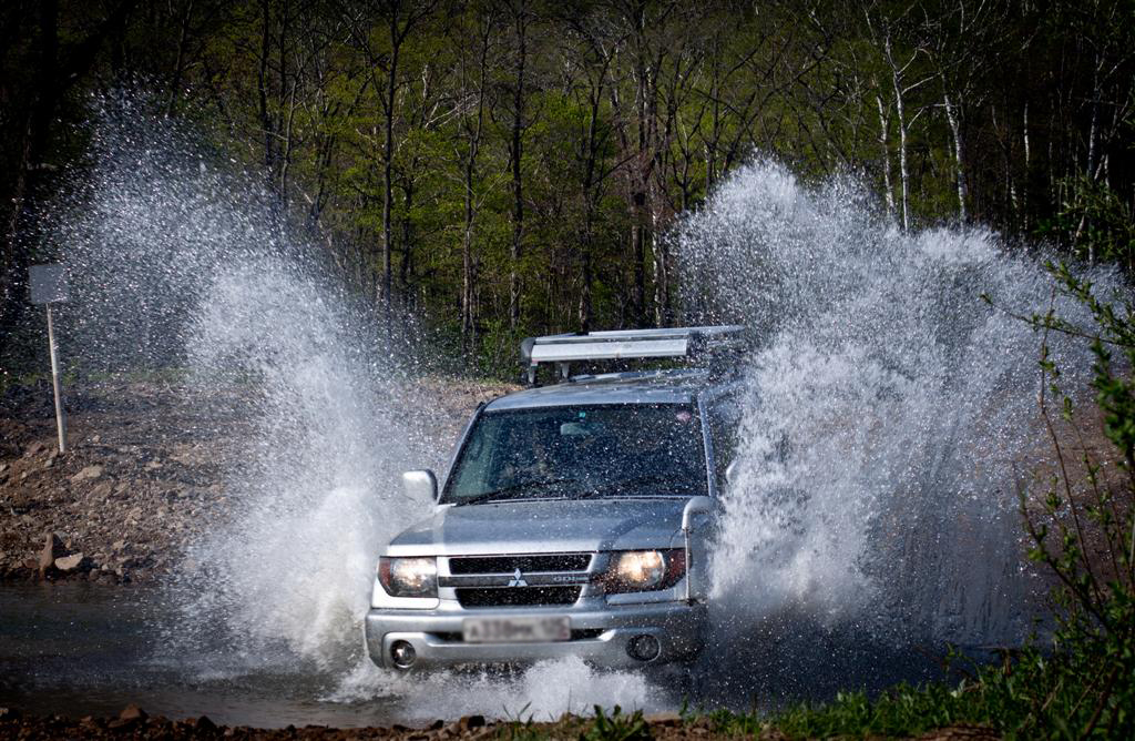 Prześwit poprzeczny pojazdu wzrósł do 282 mm (pierwotnie wynosił 200 mm). Sama zmiana kół dodała 50 mm. Standardowe ogumienie zostało zastąpione innym w rozmiarze 245/70 R16 (średnica koła – 29,5”). Seryjnie do Pinina montowane są opony 215/65 R16. Aby móc zainstalować większe koła, rozbudowano nadkola. Dwucalowy lift zwiększył potencjał terenowy Pinina. Ale to nie wszystko. Na zmianie zyskała również strona wizualna – teraz samochód budzi większy respekt. Standardowe amortyzatory poszły w odstawkę. Ich miejsce zajęły wyczynowe elementy firmy [su_tooltip style=”green” position=”north” size=”1″ content=”Ralliart to nadworny tuner Mitsubishi. Właśnie ten zespół przygotowuje samochody producenta zarówno do najcięższych zadań (np. Dakar), jak i lżejsze, sportowe motoryzacyjne „kompozycje”.” class=”dymek”]Ralliart*[/su_tooltip] (z regulacją stopnia tłumienia).