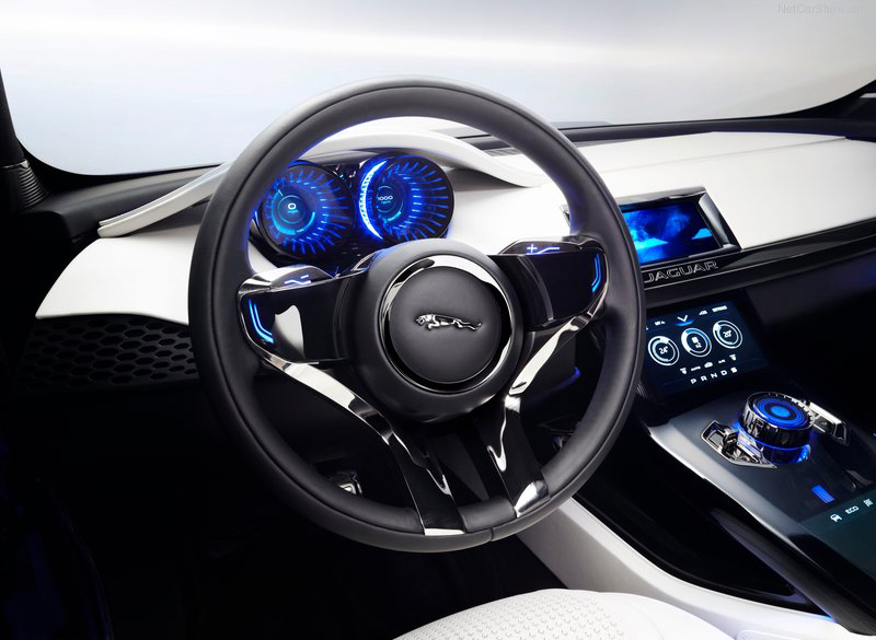 Po zerknięciu do środka uwagę zwraca nowatorski kokpit. Czarno-białe wykończenie mogłoby wydawać się ryzykownym zagraniem – tutaj jednak wszystko ze sobą współgra. Można się spodziewać przestronnego wnętrza – C-X17 jest większy od Evoque-a. Pod maską wylądują autorskiej produkcji Jaguara – czterocylindrowce montowane w angielskim Wolverhampton. Wśród motorów R4 nie zabraknie diesli. Ofertę uzupełnią mocne V-szóstki.
