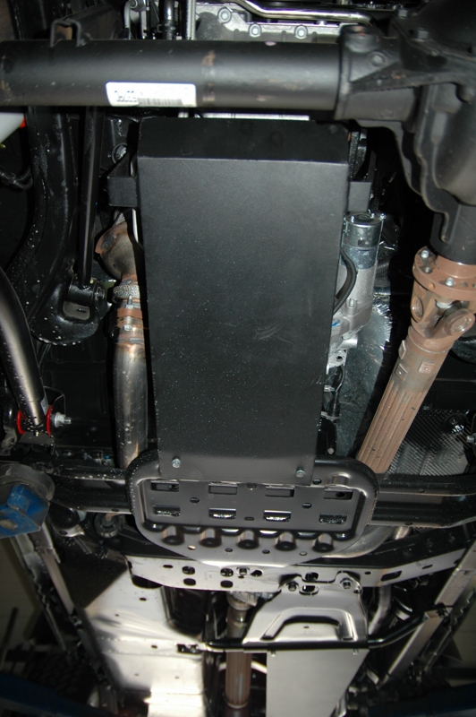 Są rzeczy, w których nie należy „dłubać”. Tak właśnie jest z napędem Wranglera. Układ jest dobry i sprawdzony – silnik ustawiony wzdłużnie, skrzynia, reduktor. Skrzynia pięciobiegowa i, co wiadomo z doświadczenia, bezawaryjna. Skrzynia rozdzielcza ręczna, 2-biegowa o przełożeniach H-1,0, L-4,0, napęd przedni – dołączany. I wszystko to po prostu działa. A żeby dopełnić obrazu całości – fabryka daje szytwne mosty wyposażone w mechaniczne blokady dyferencjałów na osiach załączane z kabiny pojazdu. Na tylnej osi zaś – mechanizm LSD. Jedyne, co warto zrobić, to zabezpieczyć spód pojazdu przed uszkodzeniami mechanicznymi. Swoje miejsce odnalazły więc solidne stalowe płyty osłaniające miskę silnika, skrzynię, reduktor i częściowo układ wydechowy.