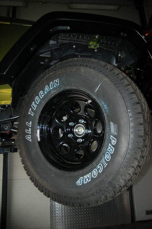 W zestawie z Rubiconem przychodzą opony AT. Przy wyborze nowych opon wybór rodzaju był więc prosty – pozostajemy przy „atekach”. Trudniej było zdecydować się na właściwą markę – oferta w Polsce nie rzuca na kolana. W końcu padło na Pro compa ALL Terrain 35×12,5 R17. Nie trzeba było też długo myśleć,żeby dojść do wniosku, że aluminiowe felgi to nie są części w teren. Dużo właściwsze są stalowe – takie też zostały założone.
