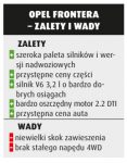 Zawieszenie, dzięki instalacji podkładek pod sprężyny z tyłu i „podkręcenie” drążków z przodu, można bezproblemowo podnieść o ok. 2’’. Do wnęk zmieszczą się 32-calowe koła, ale ze względu na obciążenia przedniego napędu takie rozwiązanie nie jest wskazane. Typowy japoński rozstaw śrub mocujących koła (6 x 5,5’’) umożliwia wykorzystanie czegoś od Nissana czy Toyoty. Dozbrojenie auta akcesoriami czołowych producentów, takich jak Safari Snorkel czy ARB, jest jak najbardziej możliwe. Tradycyjne rozwiązania w podwoziu i prosty kształt zderzaków znacznie ułatwiają modyfikacje. Poza czysto mechanicznym tuningiem istnieje możliwość zabawy w chiptuning. Opel Frontera bez wątpienia ma większą paletę dostępnych silników. Nietrudno zauważyć, że jednostki te są litrażowo mniejsze i oszczędniejsze od tych, które wylądowały pod maskami Troopera i Monterey. Z kolei te ostatnie może i są większe oraz bardziej „żarłoczne”, ale też generują sporą moc, co dla wielu ma niemałe znaczenie.
