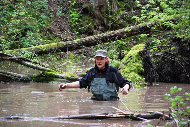 Następne odcinki są mniej mokre, czyli nie ma tyle wody, za to więcej błota, trawersów, zjazdów i podjazdów. Jest ciężko, wyciągarki w klasie extreme mają co robić. Niestety ulewa nocna i wcześniejsze deszcze zrobiły swoje. Jest bardzo ślisko na podjazdach i zjazdach nie mówiąc o trawersach, które na odcinku Geryk II i Zając są dość pokaźne i długie. Ale nie poddajemy się, jedziemy dalej. Został nam jeden odcinek Szalmia. Jak mówił organizator to odcinek około siedmiokilometrowy. Wąwóz z brakiem możliwości wyjechania na bok. No cóż, decydujemy się i wjeżdżamy, jest ciężko strumyk wzdłuż którego się poruszamy znów się zmienił w rwącą rzekę ale jest fajnie, zaczyna świtać, jedzie się coraz lepiej. Obraz jaki widzimy rano jest niesamowity, rzeka, drzewa, strome boki a my w środku na dnie wąwozu. Powoli sukcesywnie poruszamy się dalej i dalej. Po drodze spotykamy pozostawioną terenówkę, która się popsuła, pewnie ktoś przyjedzie ją wyciągnąć. Rozmawiamy z kierowcą, mówi, że po niego wrócą, jedziemy dalej. Zmęczenie doskwiera coraz bardziej, widać koniec wąwozu. Wyjeżdżamy z odcinka Szalmia.