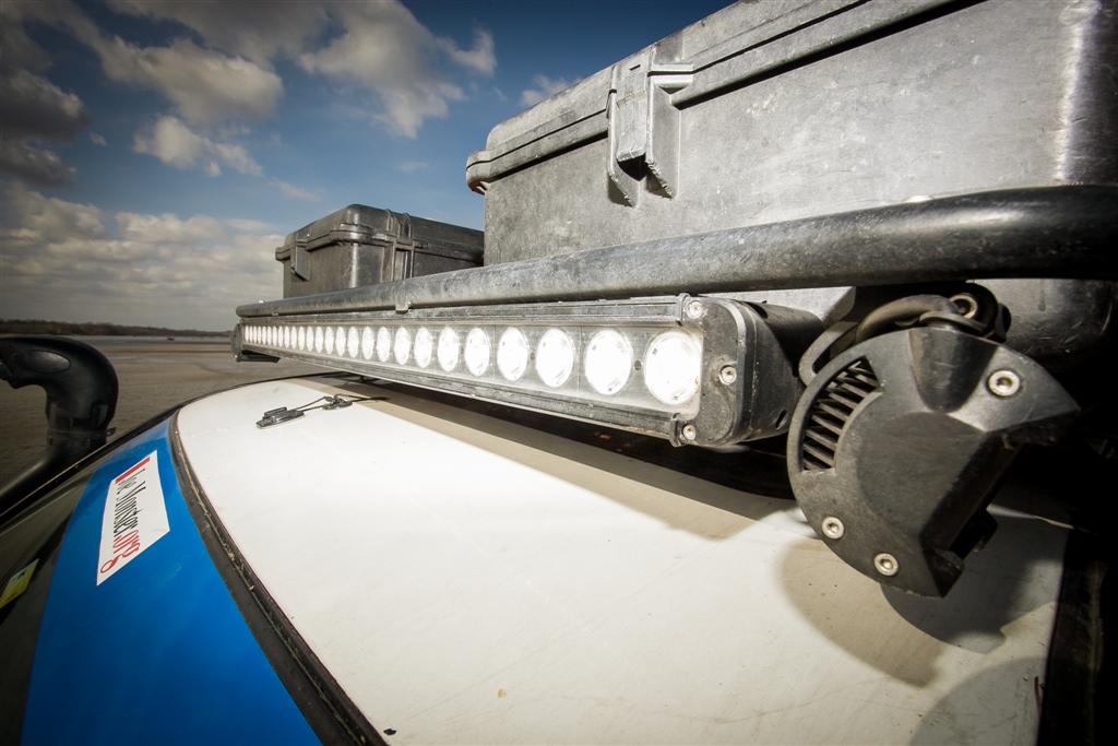 O komfortową temperaturę dba ogrzewanie postojowe Webasto Air Top. Wyposażenie wnętrza wzbogacono również o przetwornicę Waeco MSP 1512 1500 W i kompresorową lodówkę z funkcją mrożenia (pojemność – 50 l). Tysiące kilometrów w trasie to spore wyzwanie dla kierowcy. Właściciel auta, aby poprawić wygodę podróżowania, wymienił standardowe siedziska Land Cruisera na fotele marki Recaro. Dzięki przedniemu panelowi, składającemu się 26 diod (10 W), i zamiennikom ksenonowym żarówek w lampach mijania i drogowych, uzyskano bardzo dobrą widoczność na drodze i w terenie. Na postojach przydają się dodatkowe lampy tylne i boczne.