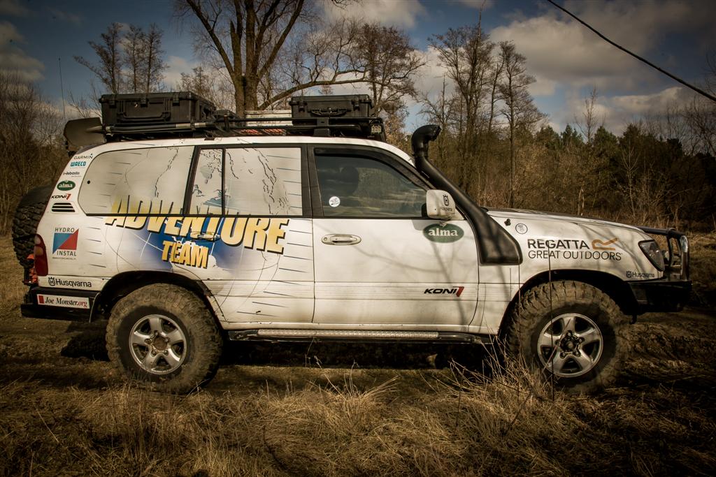 Prace, przystosowujące auto do różnorodnych wypraw, rozpoczęły się od wymiany zawieszania na sprężyny i drążki skrętne firmy Iron Man z liftem 2″ oraz amortyzatory Koni Raid. Poza tym dodano stalowe zderzaki – z tyłu znalazł się wyposażony w ramię do koła zapasowego produkt firmy Hydro-Instal, z przodu natomiast zainstalowano wzmocniony chiński zamiennik (jednak ze względu na słabą jakość element będzie w przyszłości wymieniony na inny). Firma Hydro-Instal dostarczyła również wykonane z 6-milimetrowego aluminium osłony silnika i skrzyni biegów oraz progi ze stali kwasoodpornej wykorzystywane jako zbiorniki sprężonego powietrza. Zdolność do pokonywania trudnego terenu poprawiają 33-calowe emteki BFGoodrich, snorkel oraz wyciągarka Warn 12.o XE Endurance z powietrznym chłodzeniem silnika.