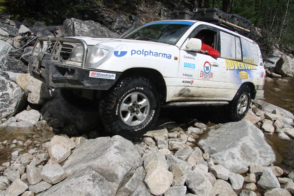 [su_note note_color=”#e8e3a3″ text_color=”#000000″ radius=”8″]Wbrew pozorom niezależne zawieszenie w połączeniu z osłoną podwozia pozwala Land Cruiserowi na pokonywanie naprawdę trudnego terenu, czego dowodem może być chociażby odbyta w 2012 r. podróż, kiedy to Michał Rej i Marek Zarod, w pojedynkę, bez żadnego wsparcia, objechali Jezioro Bajkał.[/su_note]
