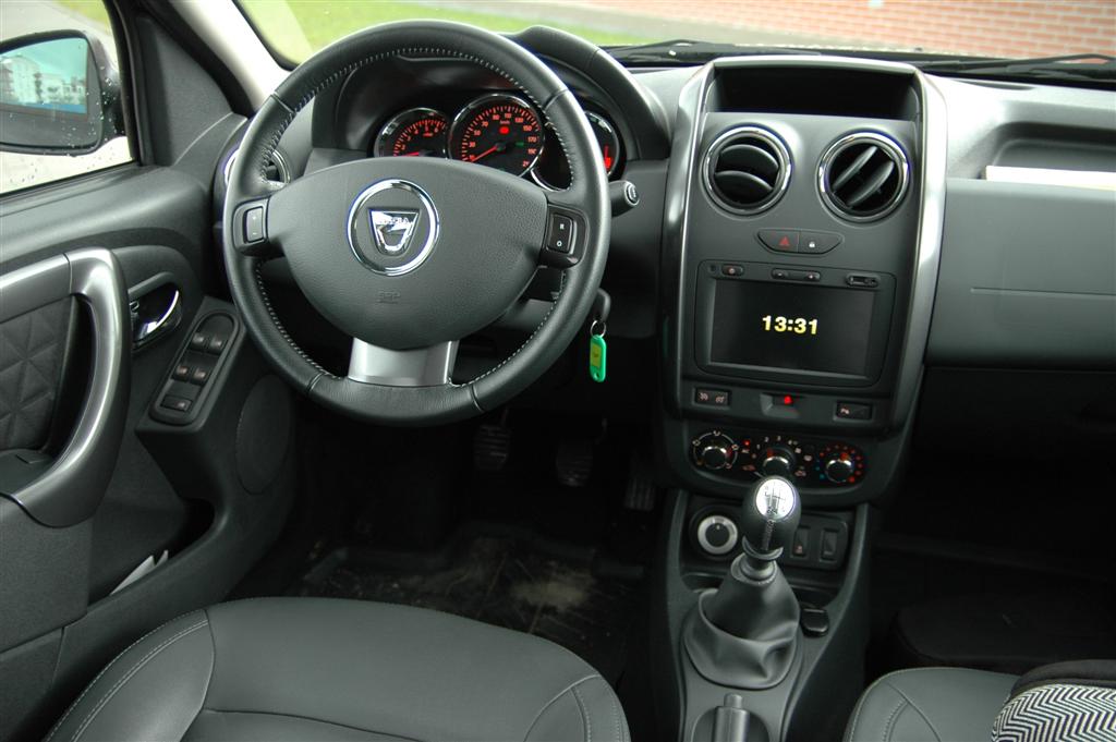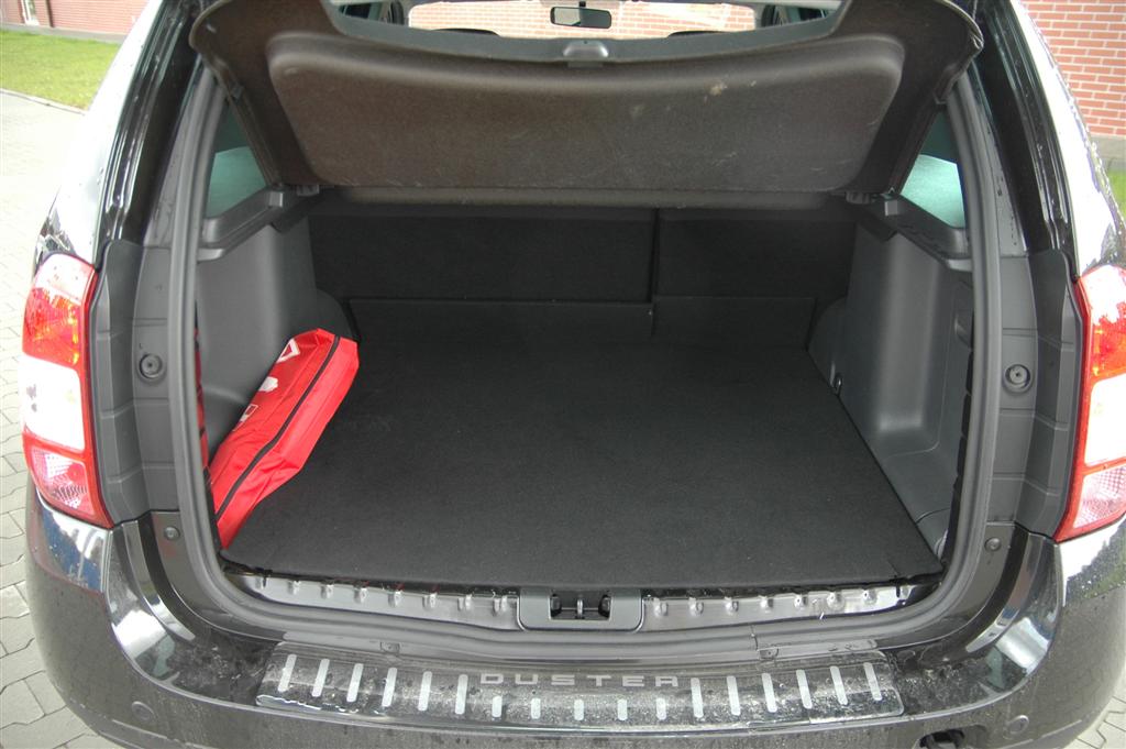 Gabarytowo Duster jest mniejszy od krewnego Logana (oczywiście oprócz wysokości). Po takich wymiarach nie należy oczekiwać dużej przestronności. Jednak po wejściu do środka jesteśmy pozytywnie zaskoczeni. We wnętrzu miejsca jest wystarczająco dużo dla trzech pasażerów i kierowcy. Przy takich gabarytach przestronność kabiny najczęściej połączona jest z małym bagażnikiem. Jednak nie w tym przypadku. Bagażnik w Dusterze ma przyzwoitą pojemność wynoszącą 408 l. Nadwozie typu kombi pozwala dobrze go wykorzystać. Ładowność przekraczająca 500 kg w pełni wystarcza. Jak widać, z kabinowych możliwości Dustera wyciśnięto dużo.