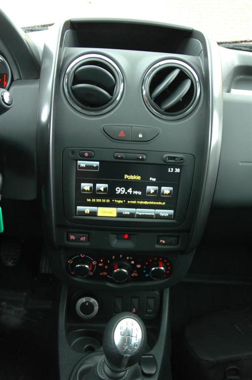 Testowana przez nas wersja została wyposażona w liczne chromowane dodatki. Z przodu nie sposób nie zauważyć orurowania „dzioba”. W niektórych sytuacjach jest to praktyczny dodatek, w innych przeszkadza w jeździe – mniejszy kąt natarcia. Boczne progi po kilkudniowej eksploatacji kojarzą mi się z brudnymi nogawkami spodni (wsiadanie, wysiadanie) oraz ze zwiększonym prawdopodobieństwem zaczepienia o podłoże. Należy się zastanowić nad zasadnością dokupowania tego typu elementów. Niektórzy mogą mieć też problem z pogodzeniem „tanich” tuningowych dodatków z Dusterem, który – wydaje się – najlepiej wygląda bez takich ekstrasów. Ten samochód nie powinien niczego udawać. Jest to tanie w zakupie auto i wszelkie błyskotki działają na jego niekorzyść. Dopełnieniem całości są „śliczne” błyszczące obudowy lusterek wstecznych.