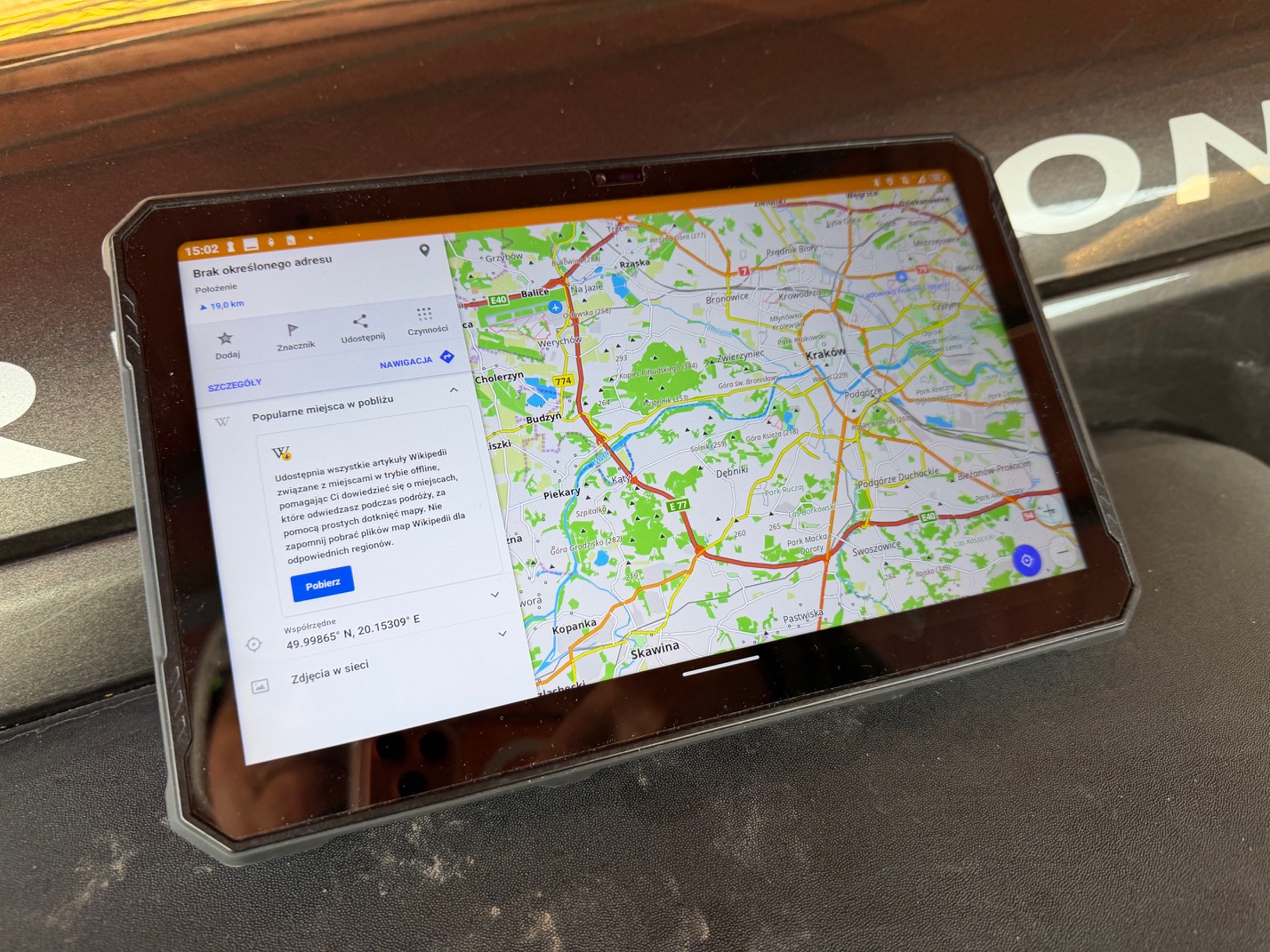 Ekran: co byśmy nie napisali i tak wielu z Was najnormalniej pokiwa głowami, bo nie każdy ogarnia milion parametrów które towarzyszy naszym urządzeniom. 10 cali z hakiem to już konkretny ekran, nie mały ale na tyle duży, że wysiadając z auta nie porysujecie drzwi. Rozdzielczość 2000×1200 px (FHD+)  w zupełności wystarcza do pracy z dokumentami, mapami, aplikacjami, przeglądania internetu czy multimediów. Panel IPS LCD, co zapewnia szerokie kąty widzenia i dość dobre odwzorowanie kolorów — przydatne, jeśli używasz tabletu w terenie i często patrzysz pod „nogi” . Jasność deklarowana to do 500 nitów, co daje realną szansę, że ekran będzie czytelny na zewnątrz, przy słońcu, co przy „pancernym” tablecie do zastosowań terenowych jest dużym plusem. Ekran jest zabezpieczony szkłem typu Corning Gorilla Glass, co zwiększa odporność na zarysowania, upadki i uderzenia — ważne przy urządzeniu „rugged”. Czy ekran możemy określić jako rozwiązanie premium? Jasne, że nie, ale z czystym sumieniem można go określić jako wystarczająca opcja + .