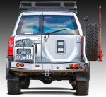 Ponieważ umiejscowienie zapasu z tyłu wydaje się mieć więcej zalet niż wad, jest najczęściej spotykane w świecie 4×4. Dotyczy to zarówno aut rajdowych, jak i przeprawowych. Do wad tego rozwiązania należy zazwyczaj słaba nośność zawiesi oraz ilość miejsca przeznaczona dla rozmiarów dopuszczonych przez producenta lub z minimalnym naddatkiem. Otwiera to ogromne pole do popisu dla producentów aftermarketowych. Dla najpopularniejszych terenówek oferują oni szereg rozwiązań spełniających prawie każde wymagania.